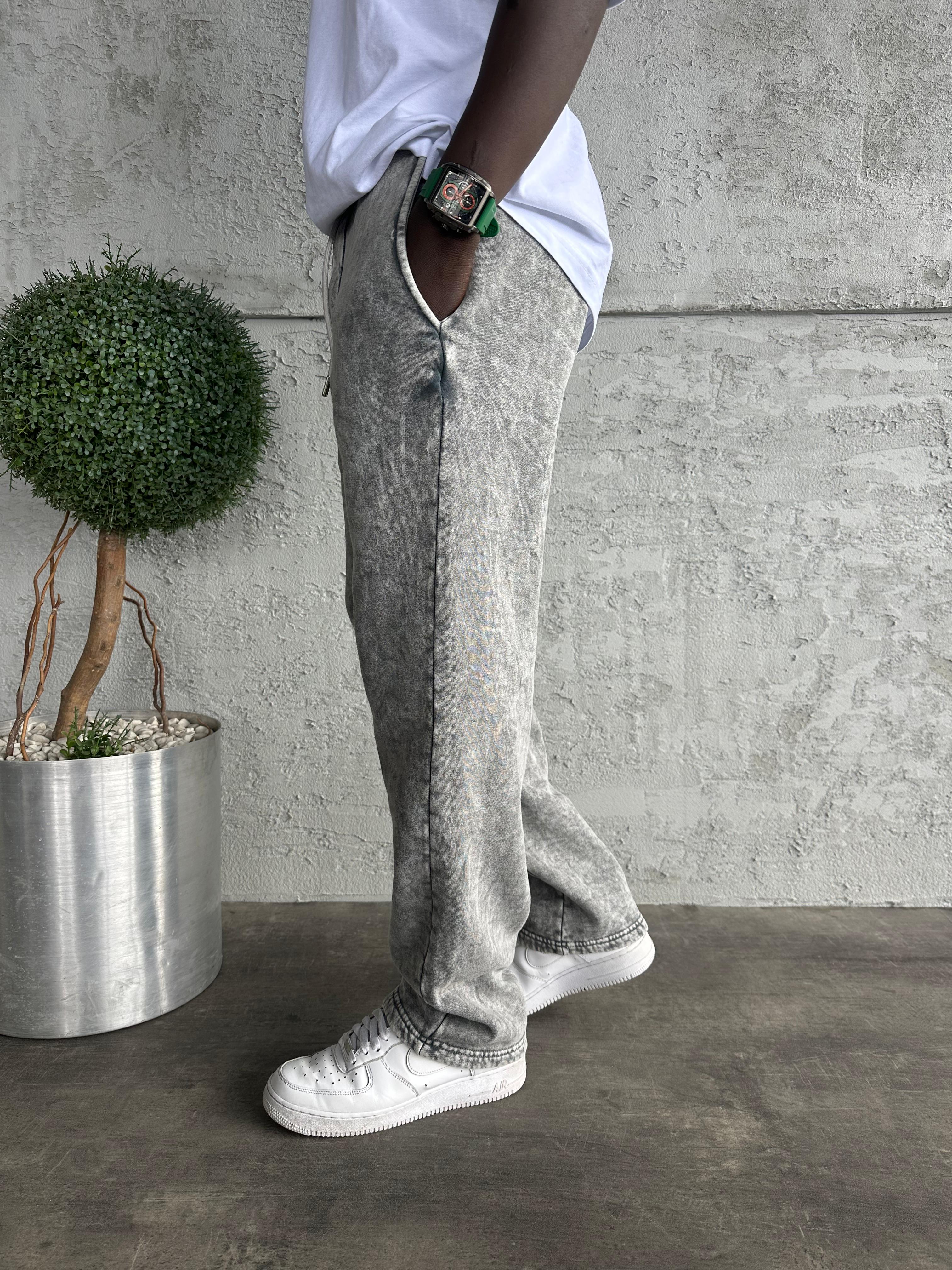 Koyu Lacivert Yıkamalı Yırtıklı Mavi Baggy Jean