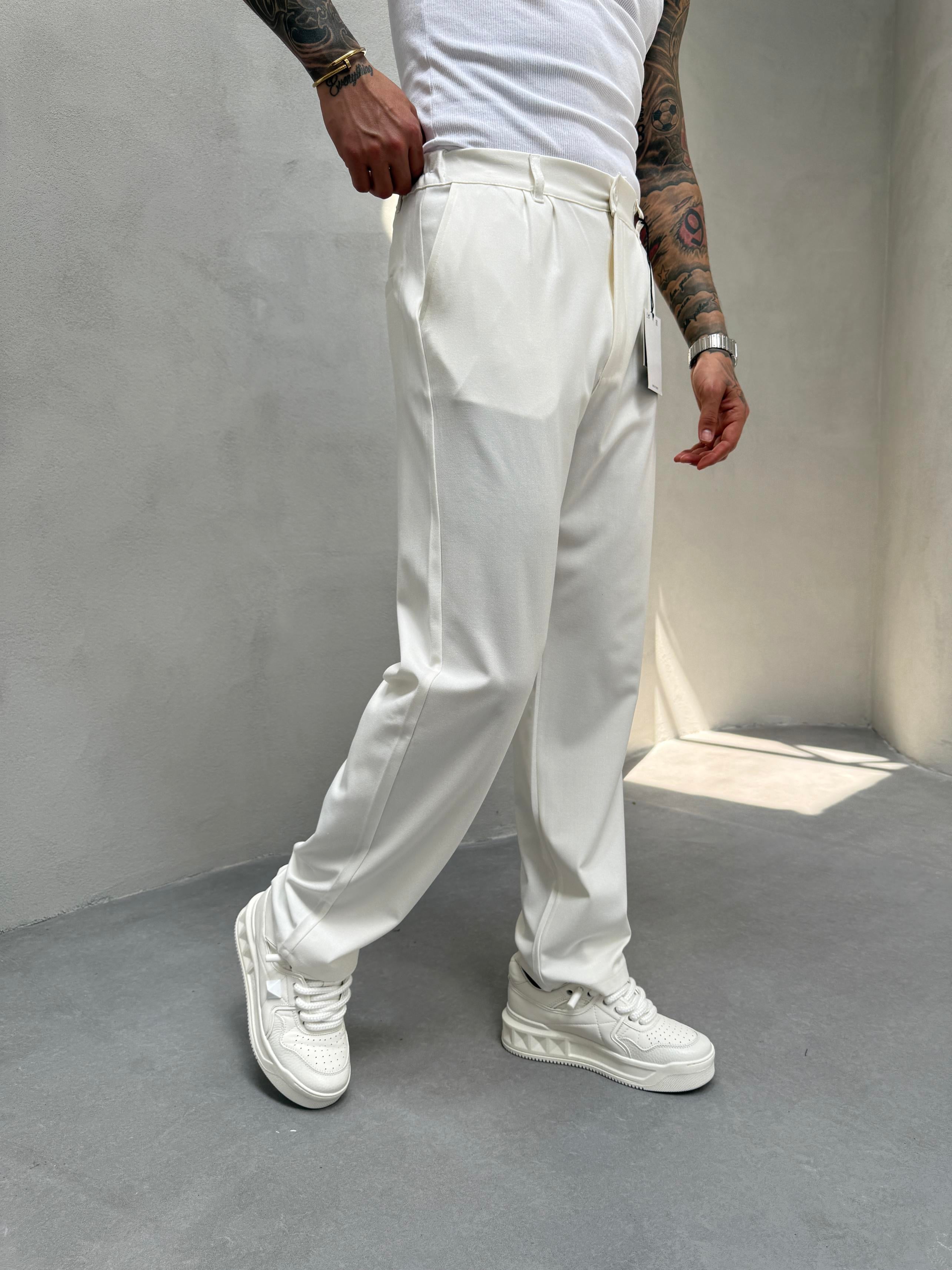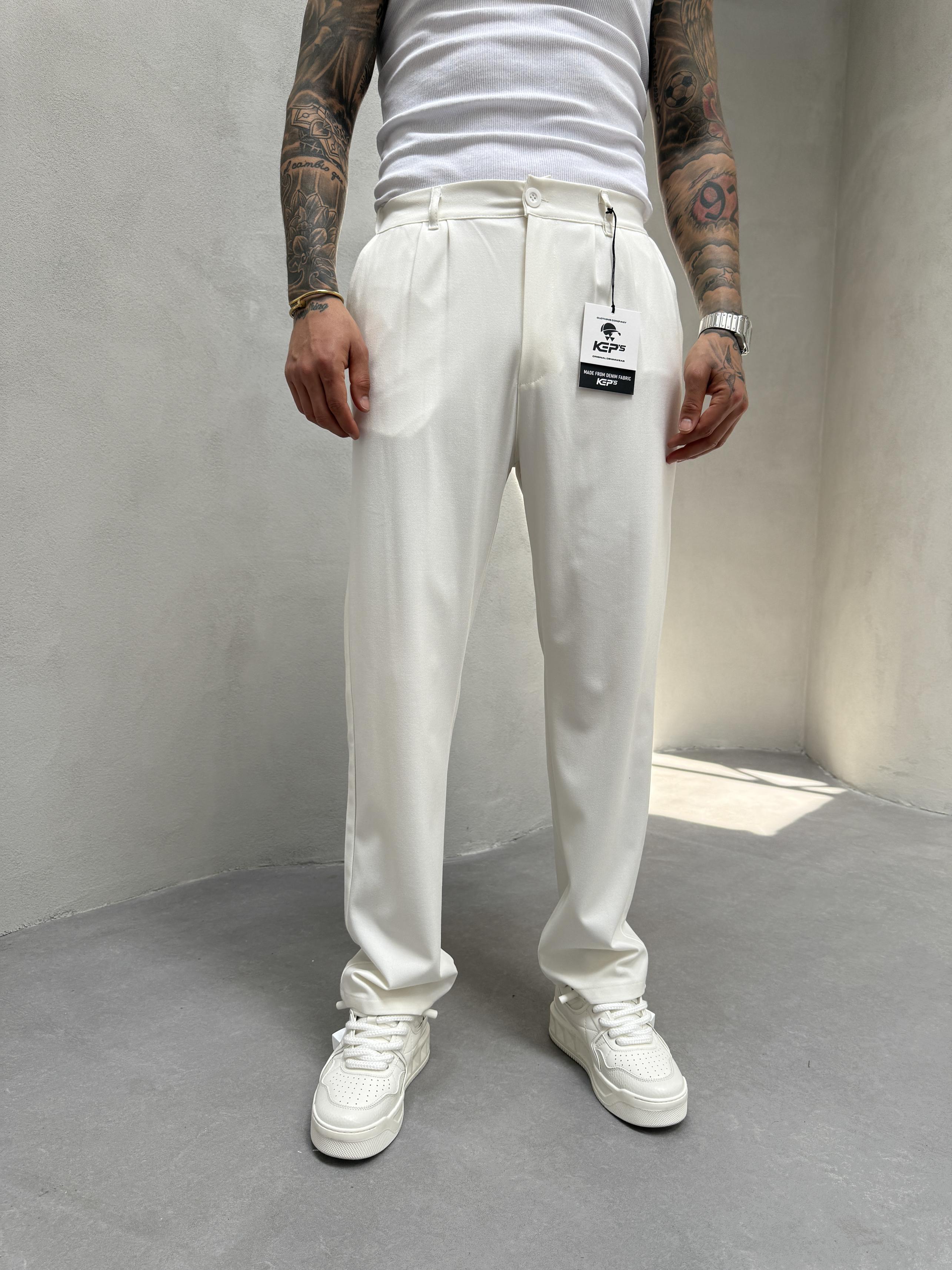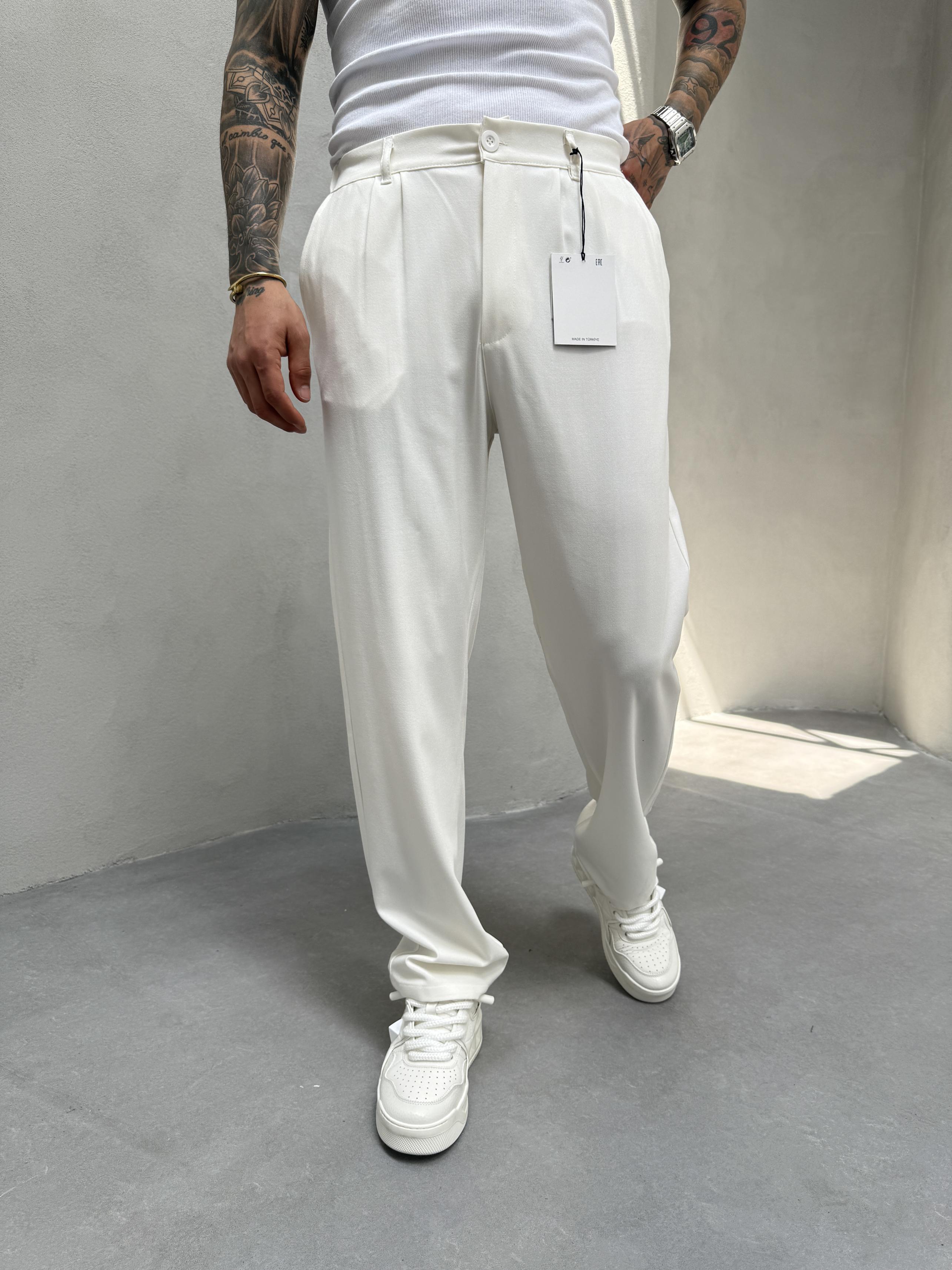 • Beyaz Pileli Baggy Kumaş Pantolon