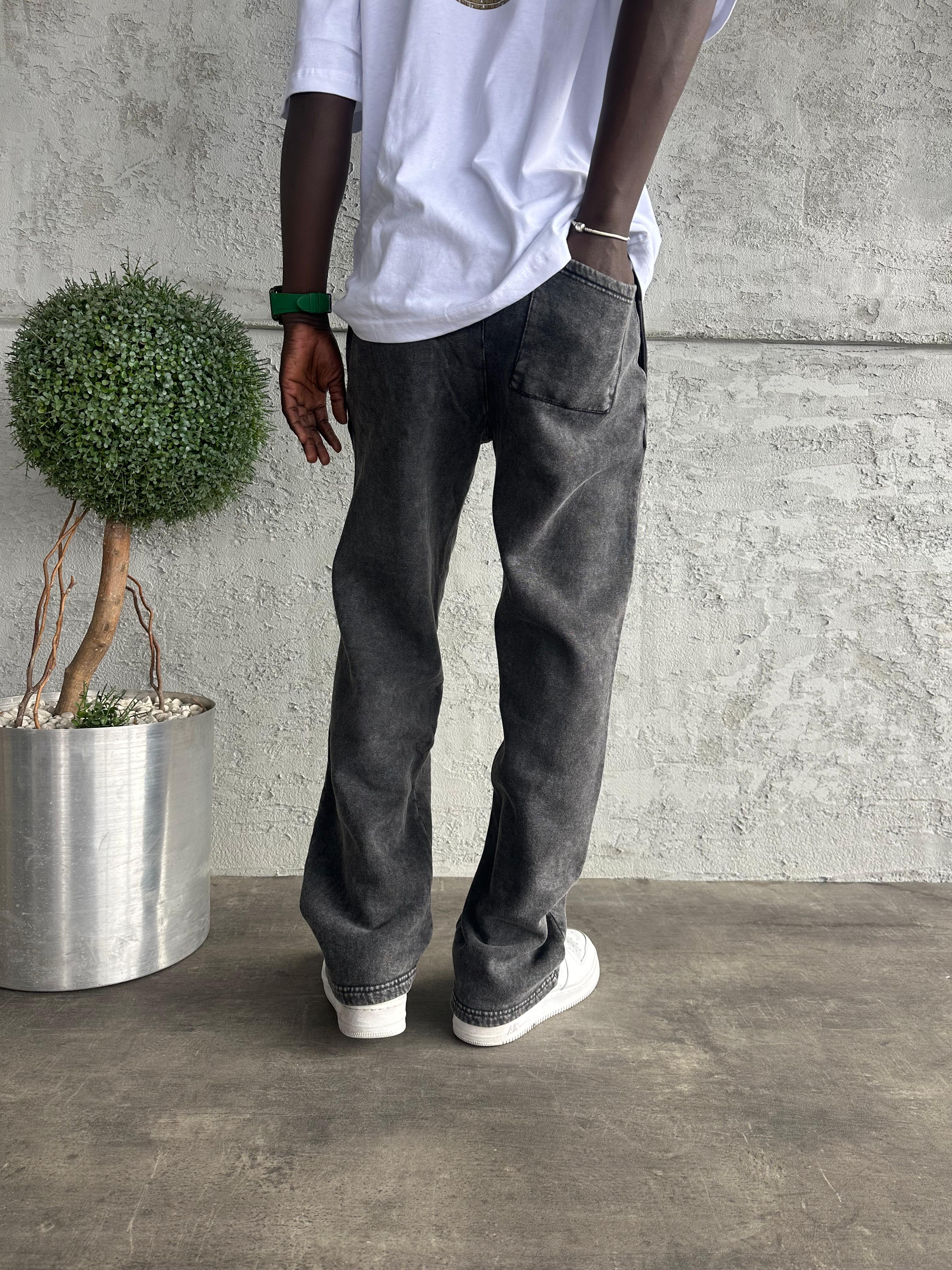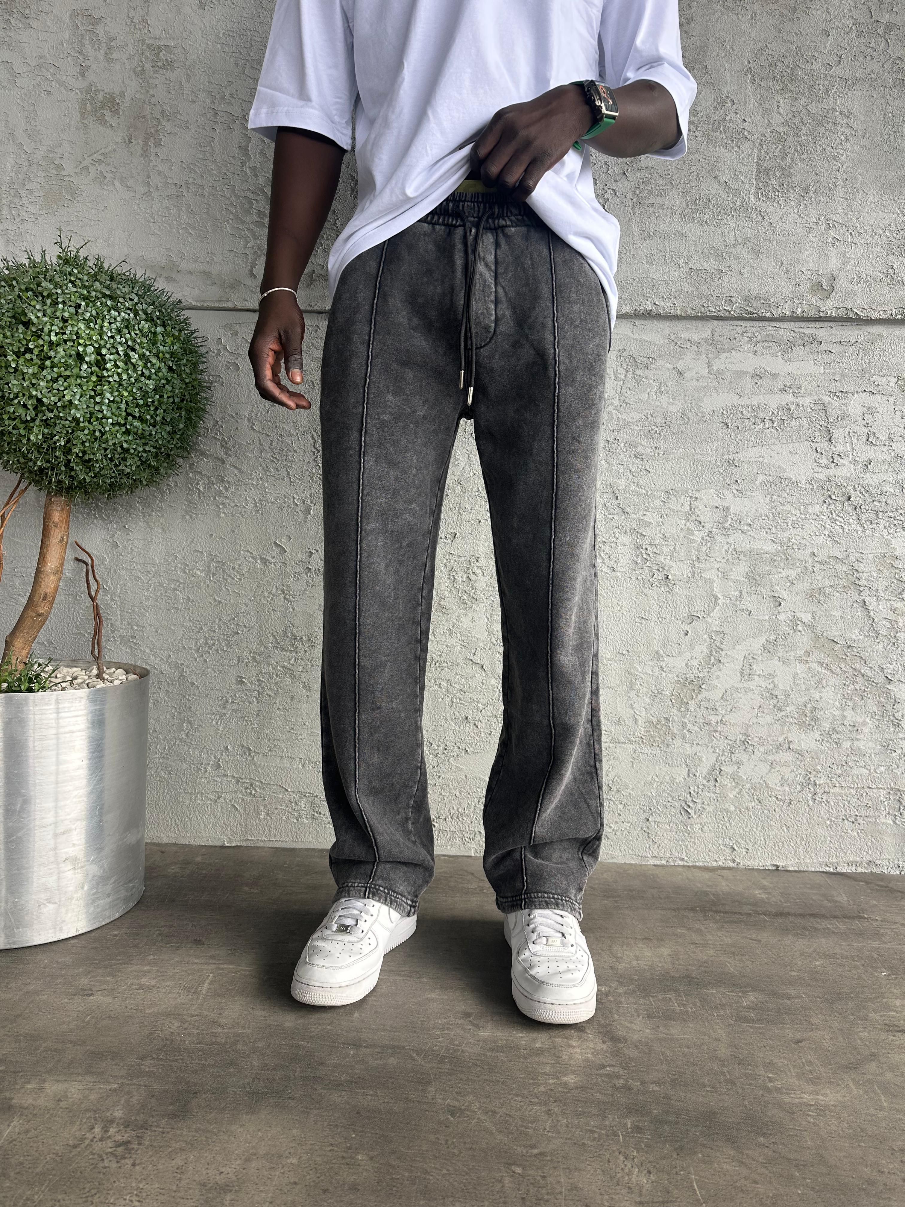 Füme Yıkamalı Şeritli Baggy Eşofman