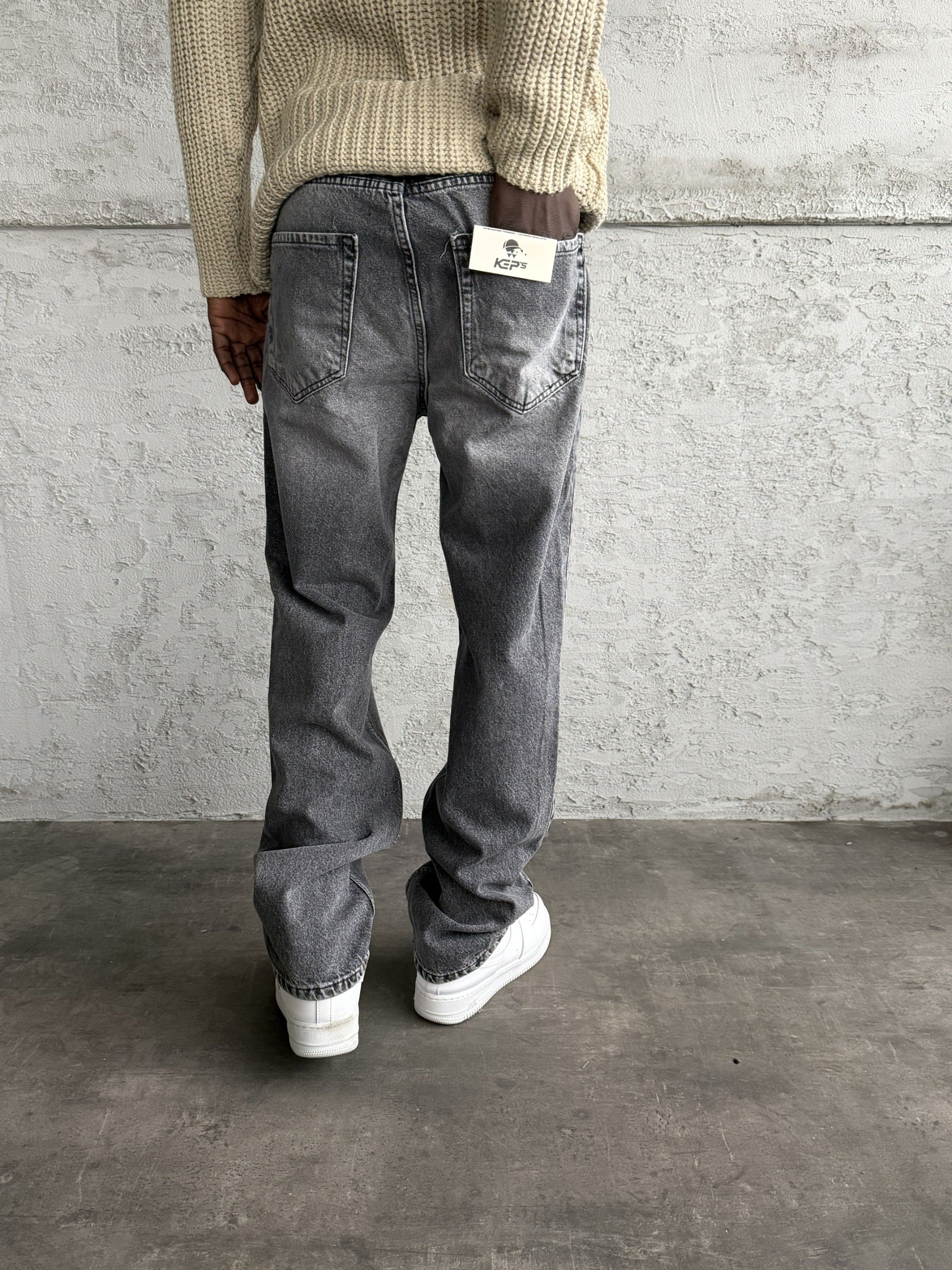 Gri Taşlamalı Baggy Jean