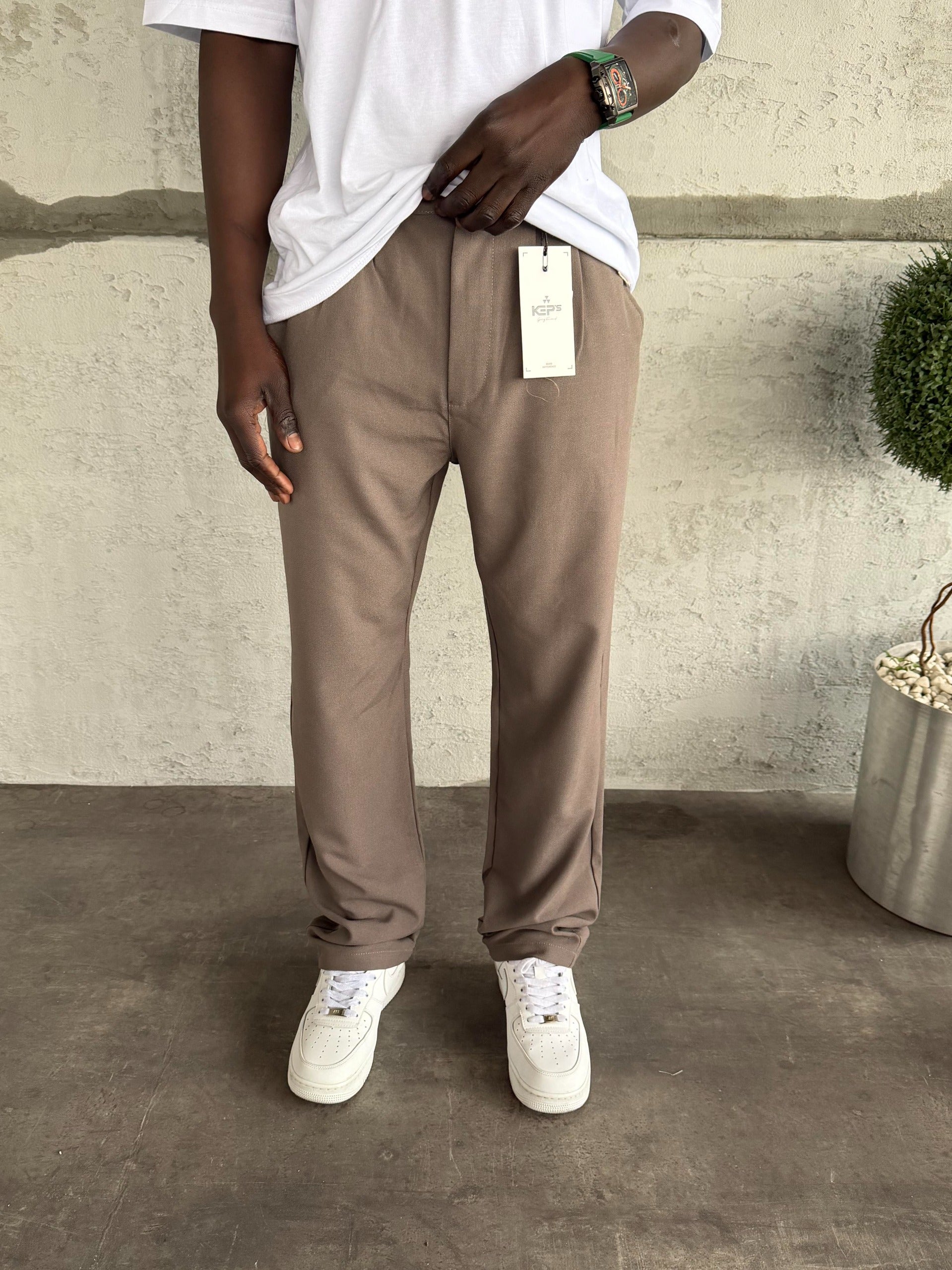 • Açık Kahve Pileli Baggy Kumaş Pantolon