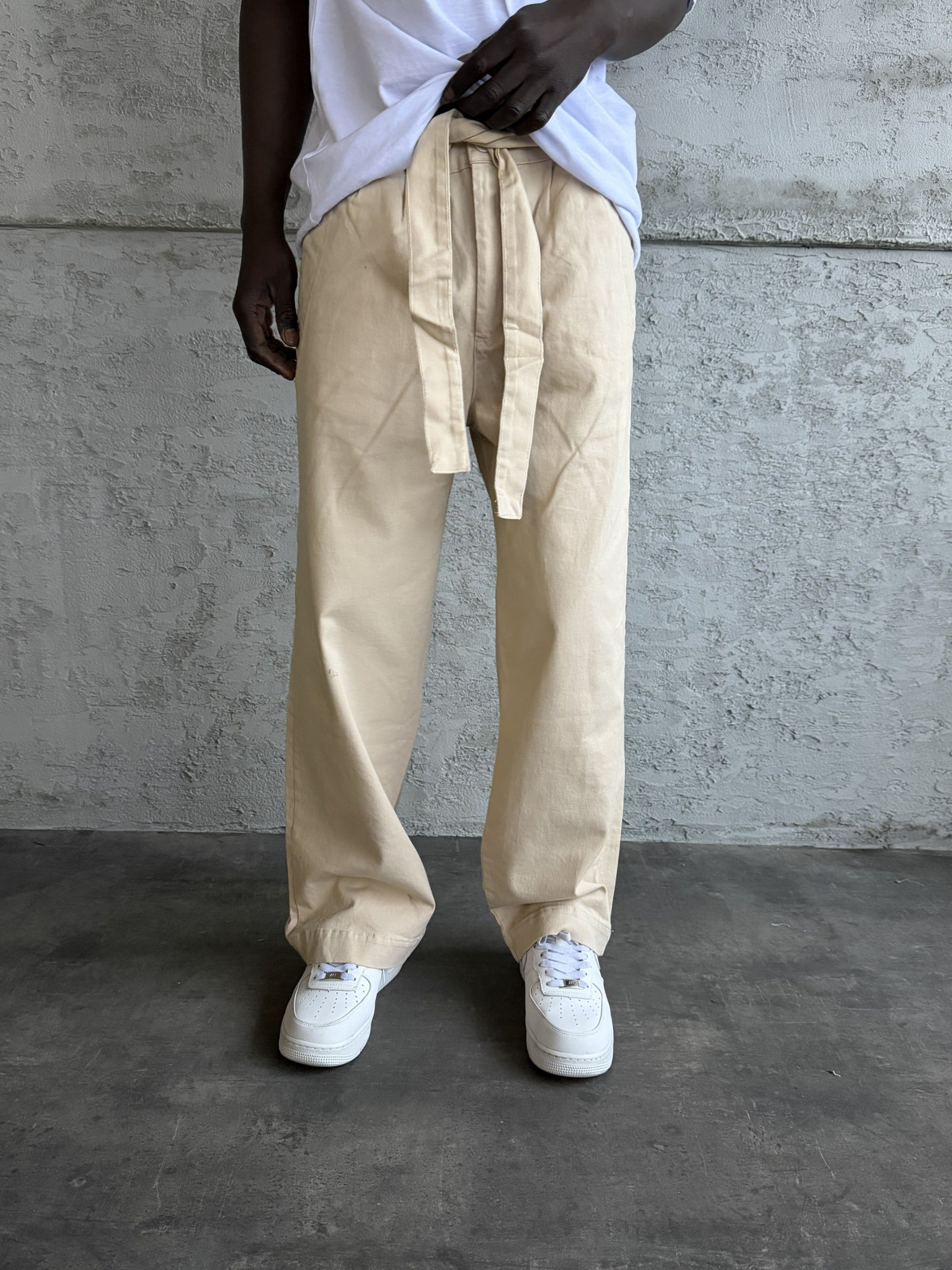 Bej Gabardin Kumaş Baggy Pantolon