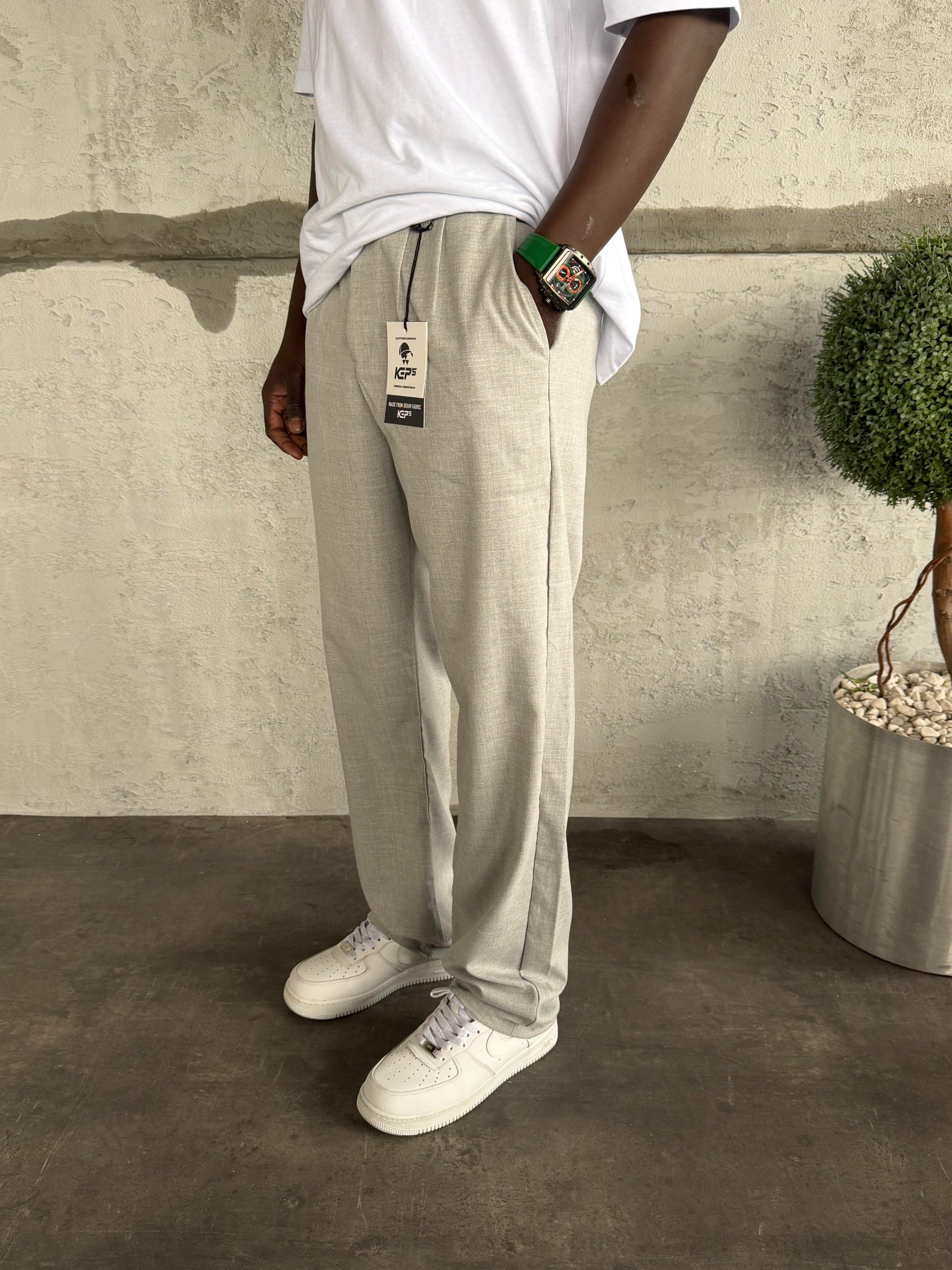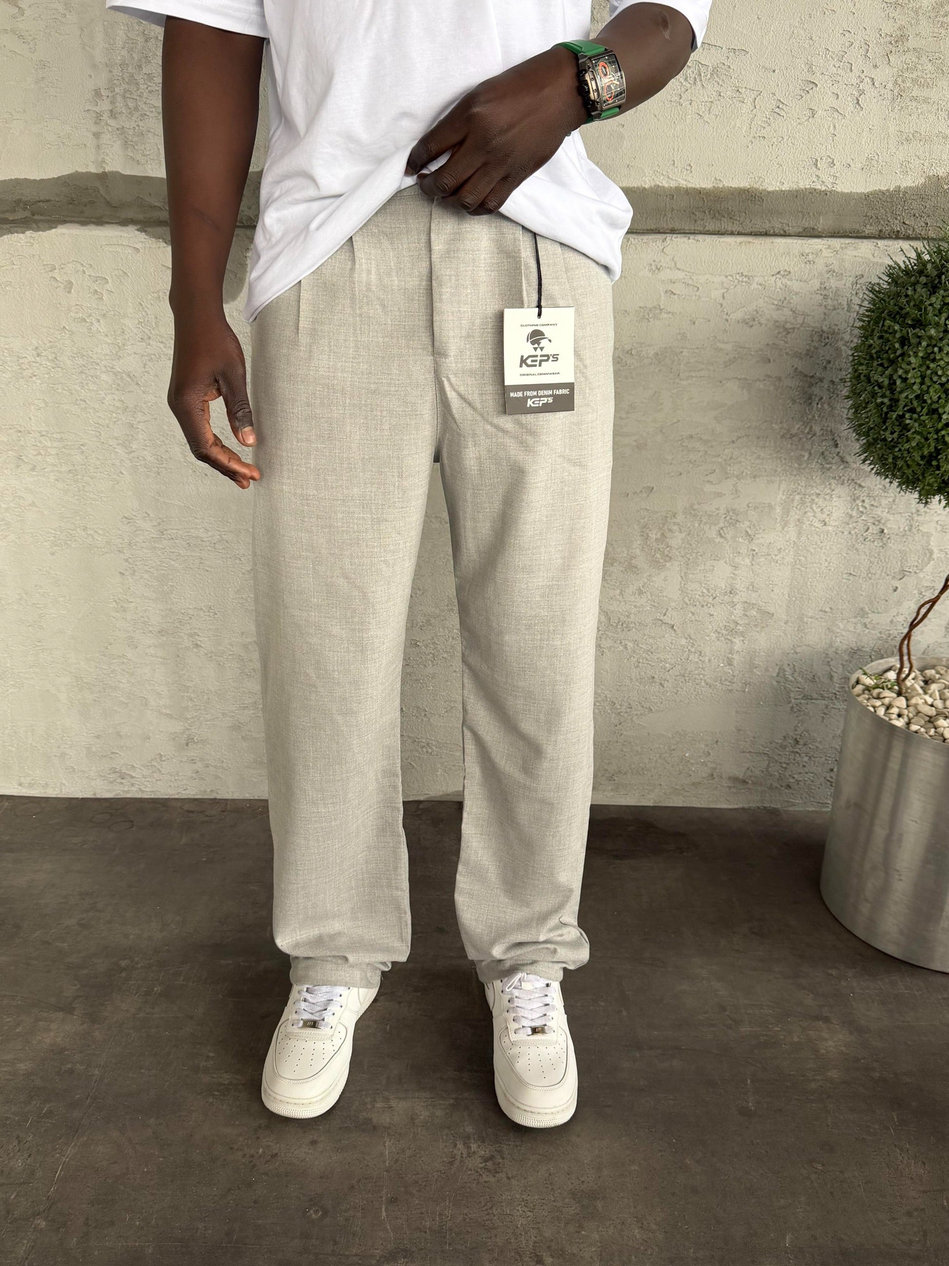 Gri Pileli Baggy Kumaş Pantolon