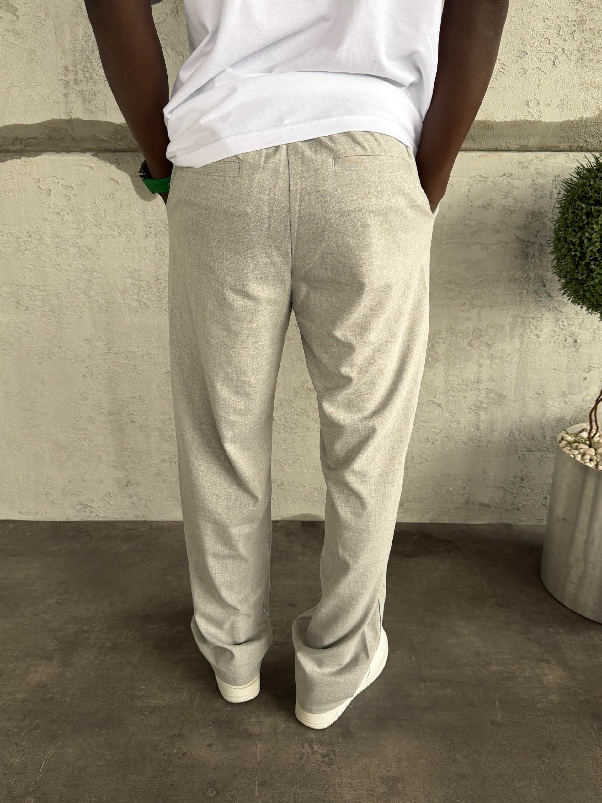 Bej Pileli Baggy Kumaş Pantolon