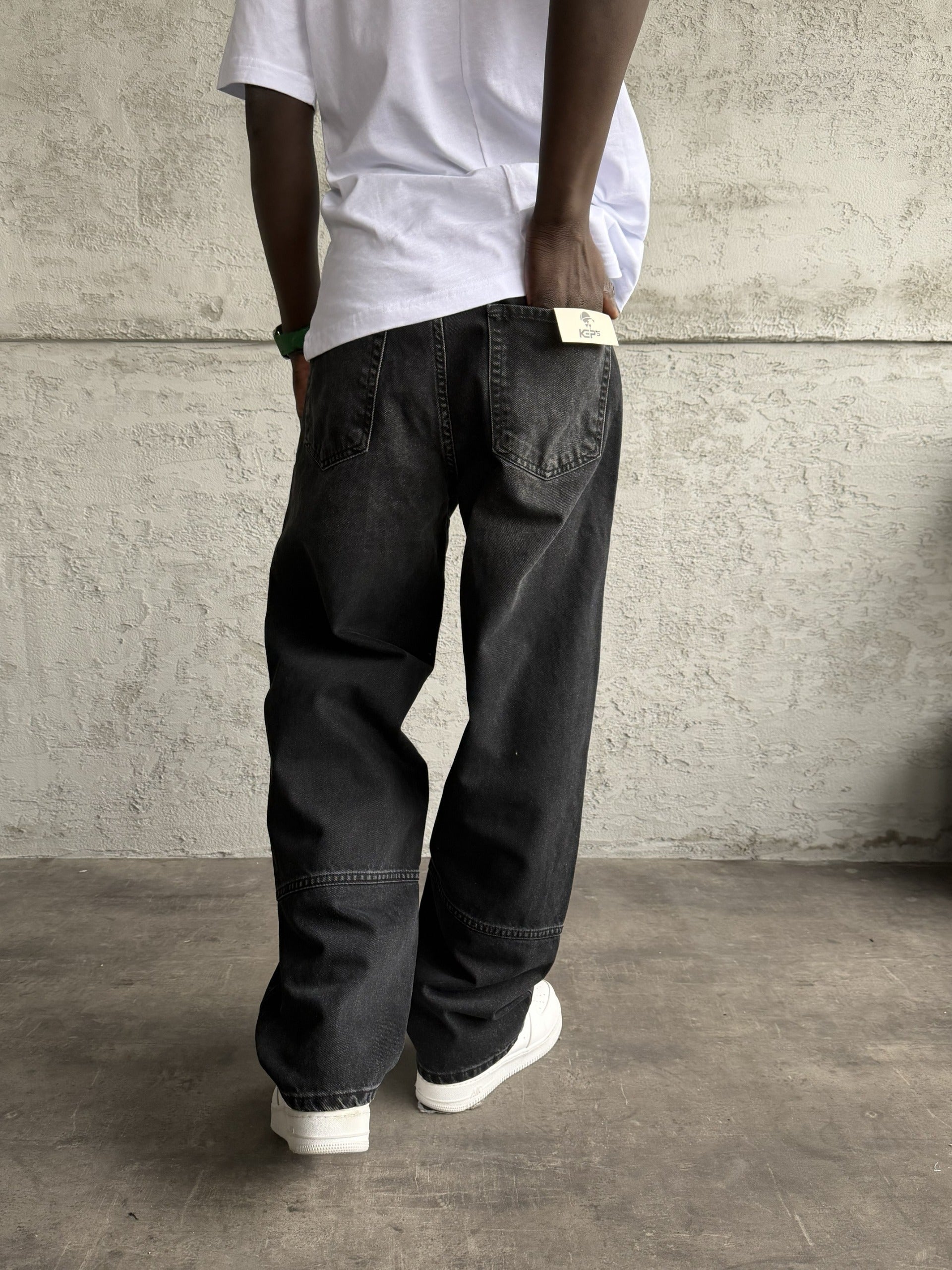 - Dikiş Detaylı Füme Taşlamalı Relax Baggy Jean