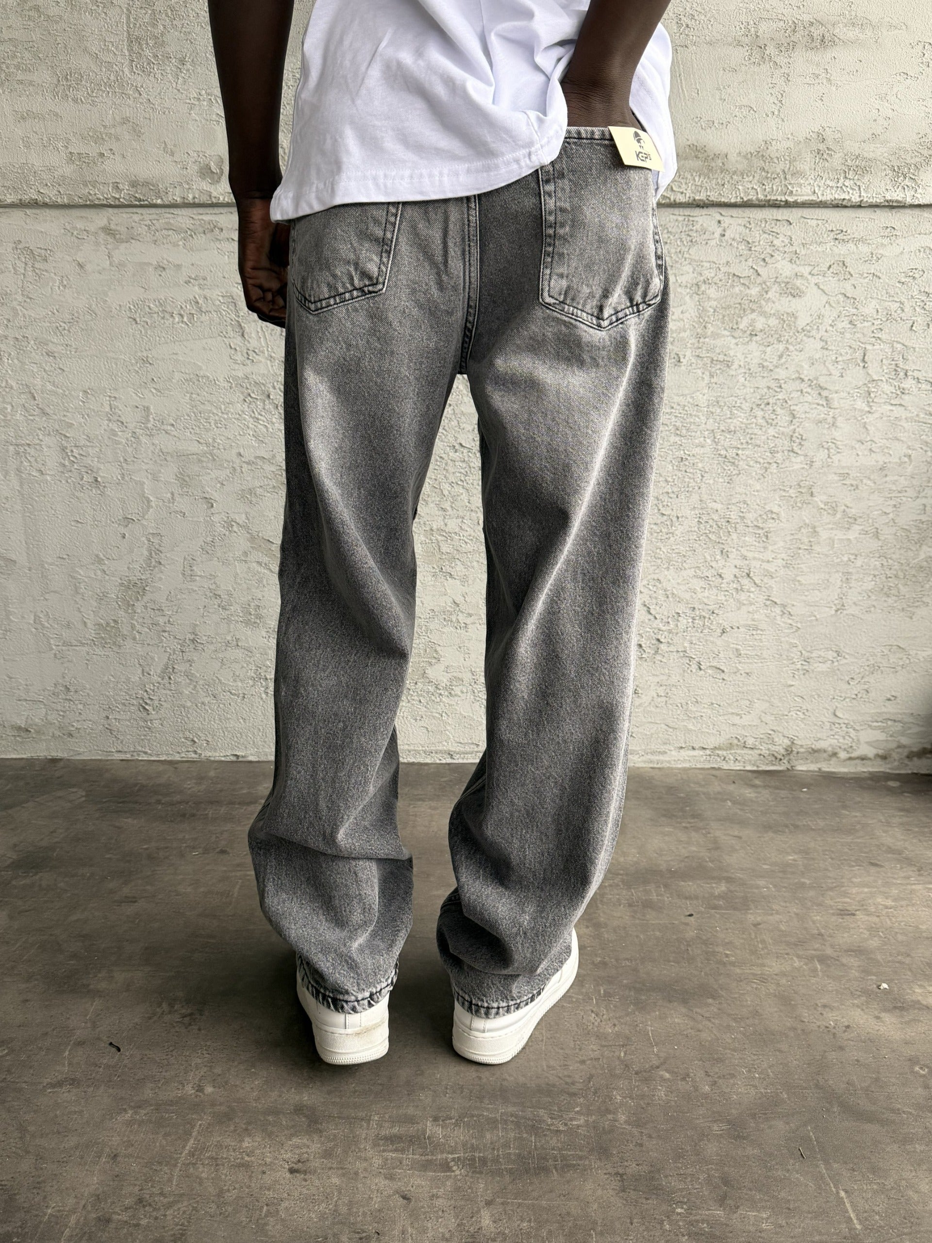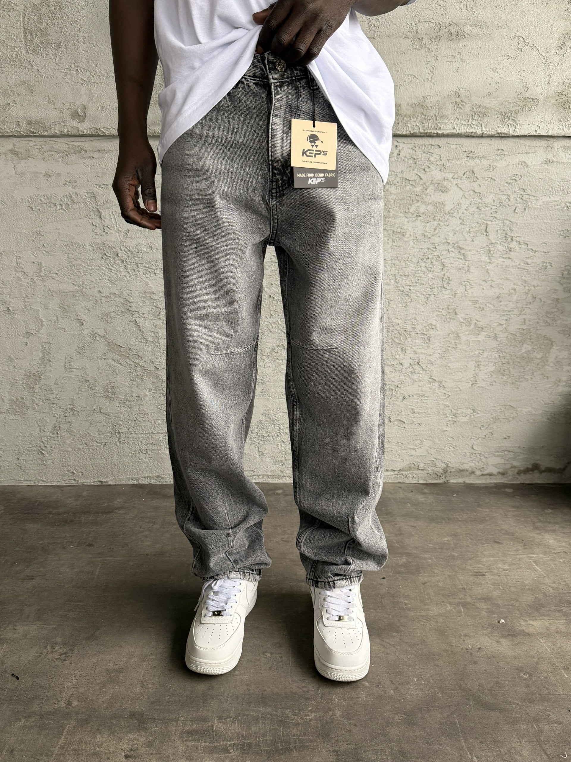 - Dikiş Detaylı Gri Taşlamalı Relax Baggy Jean
