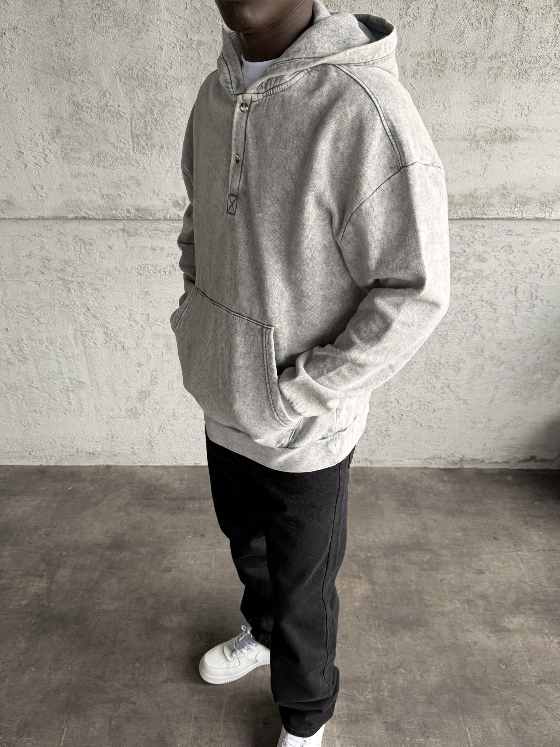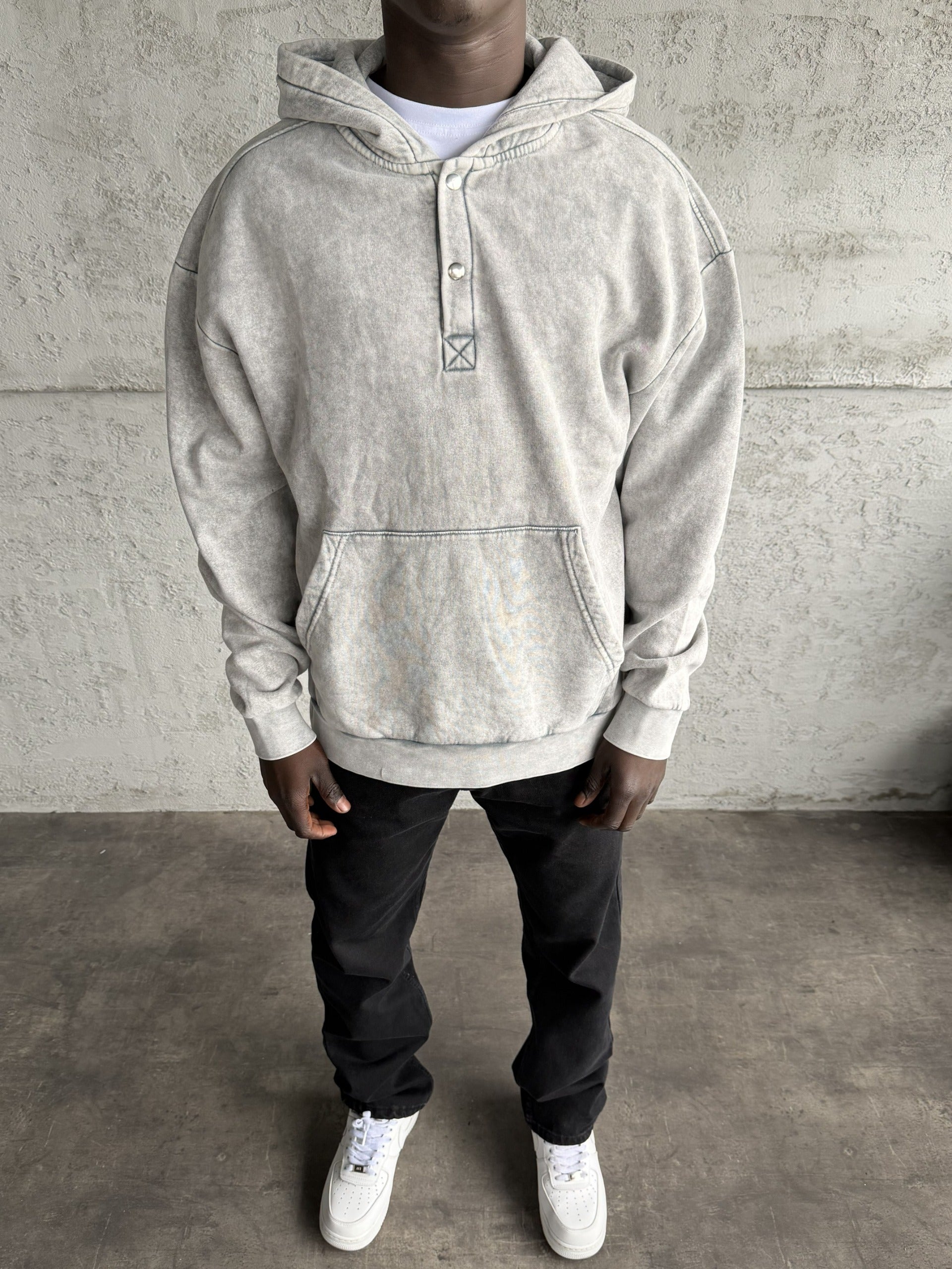 - Açık Gri Yıkamalı Kapüşonlü Sweatshirt