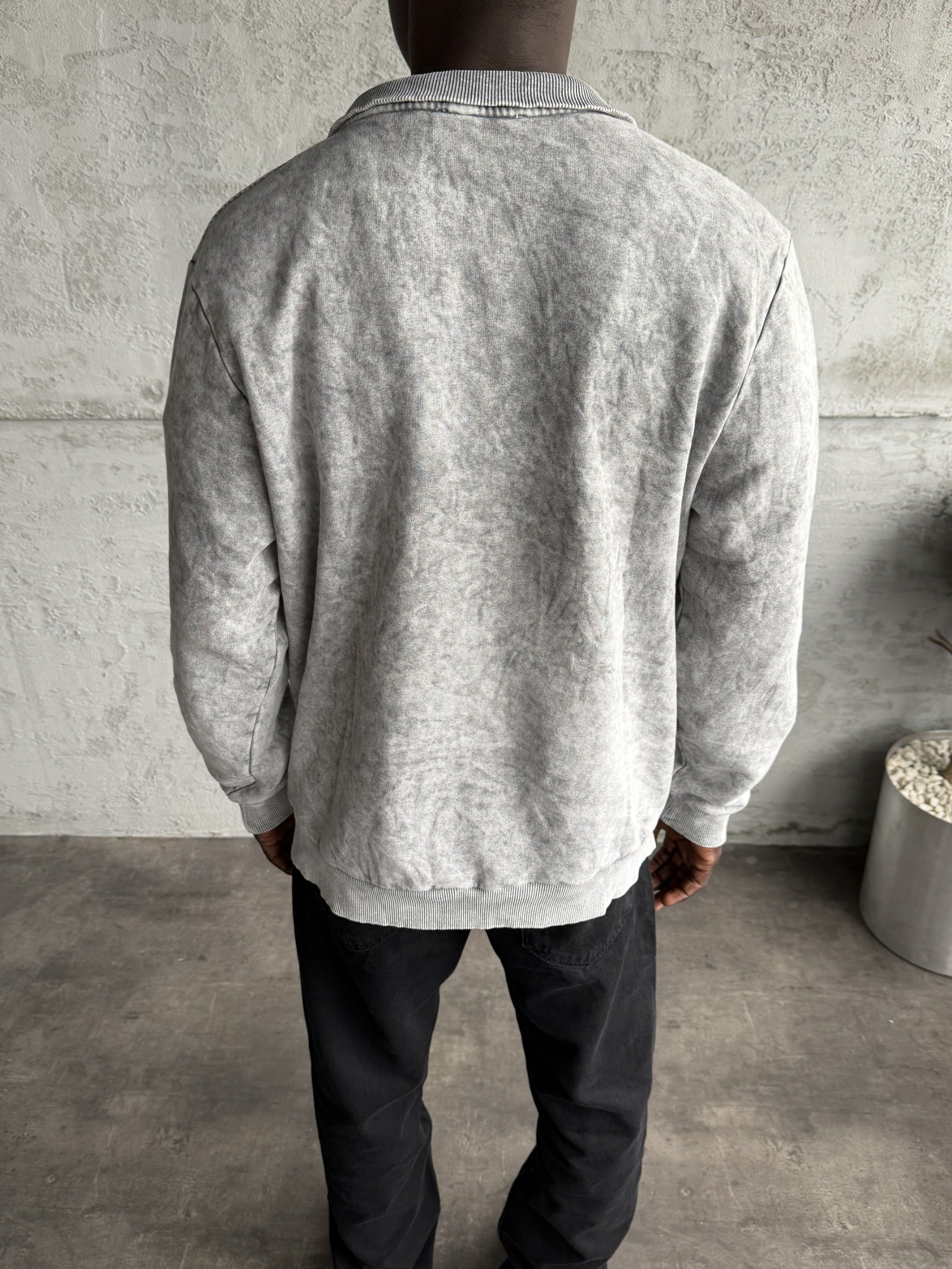 Açık Gri Yıkamalı Fermuarlı Sweatshirt