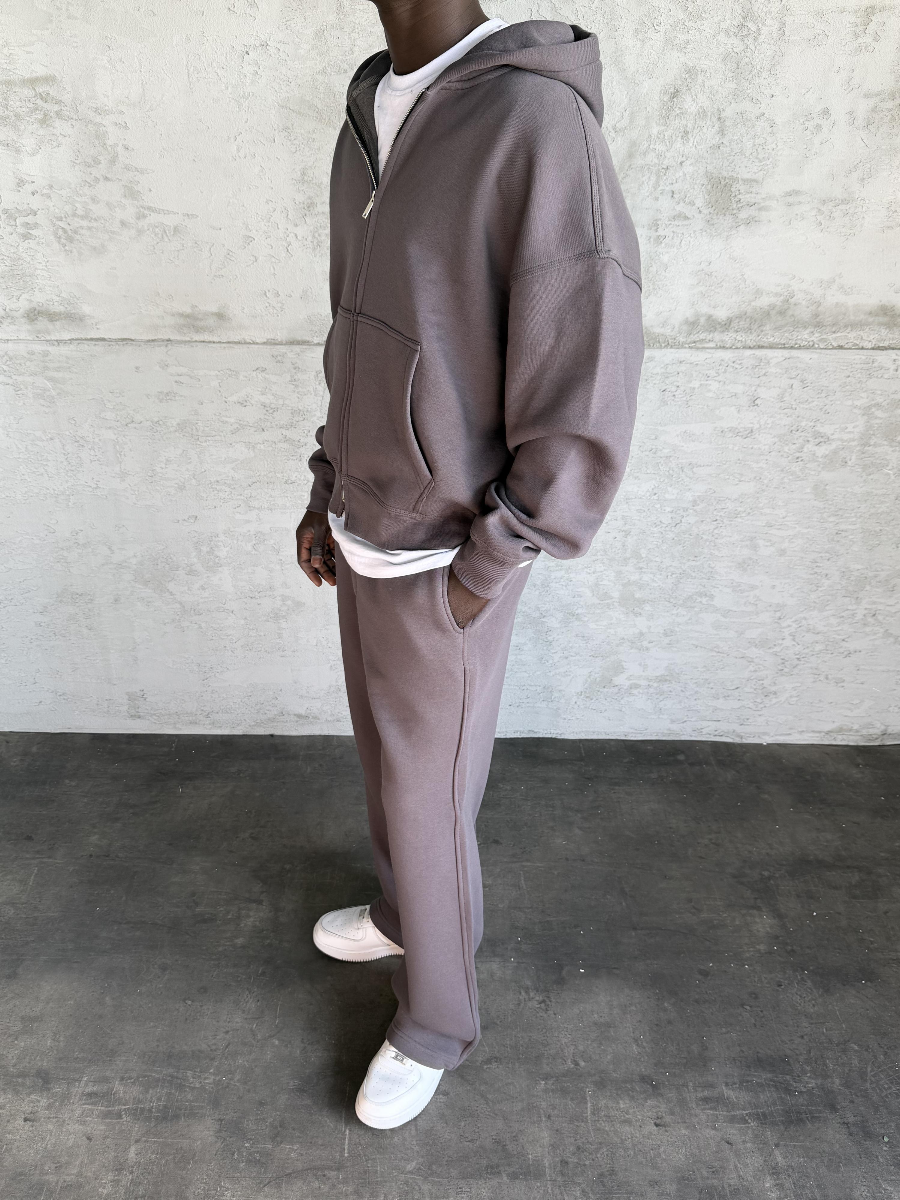 Füme Kapüşonlu Fermuarlı Sweatshirt