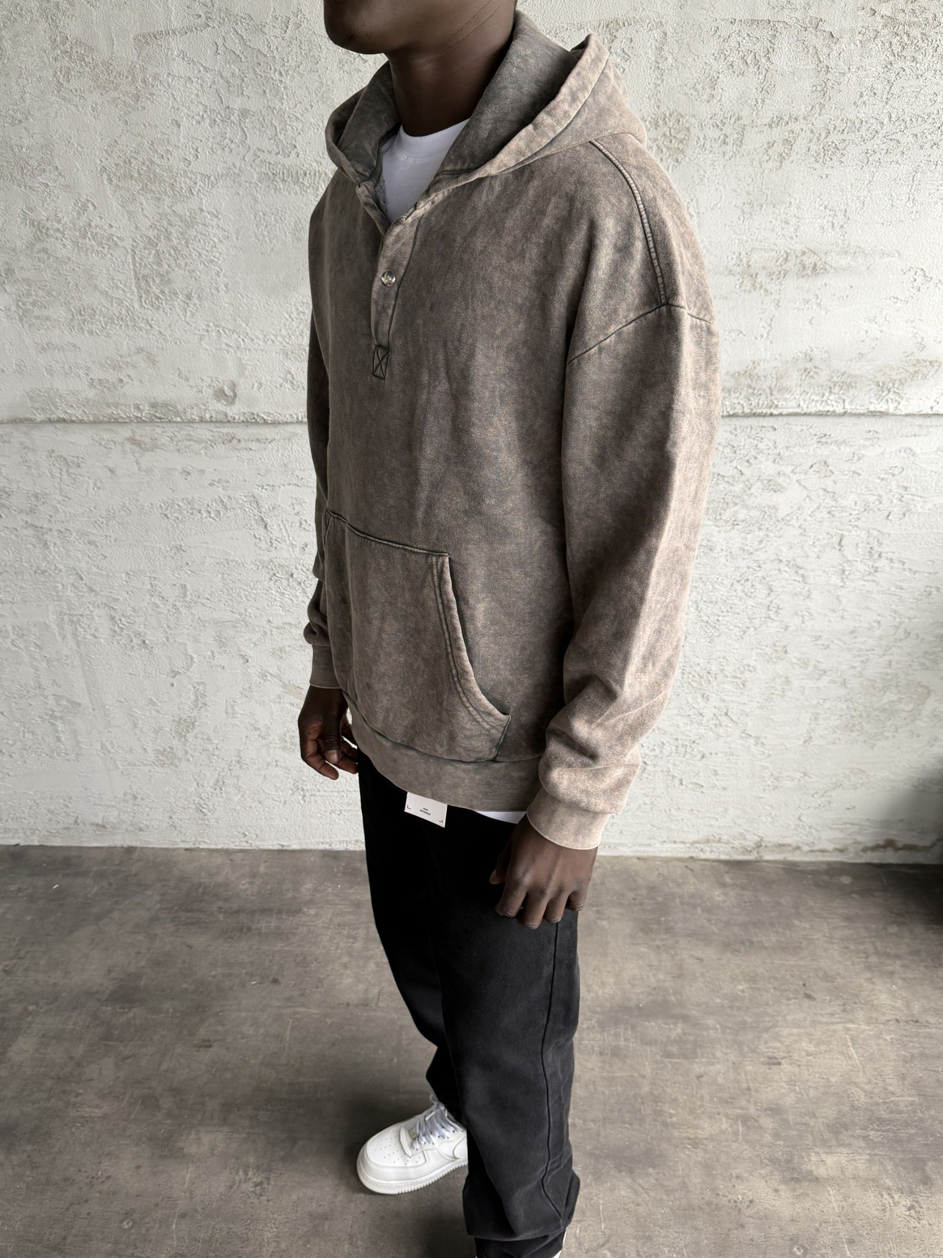 Kahve Yıkamalı Kapüşonlü Sweatshirt