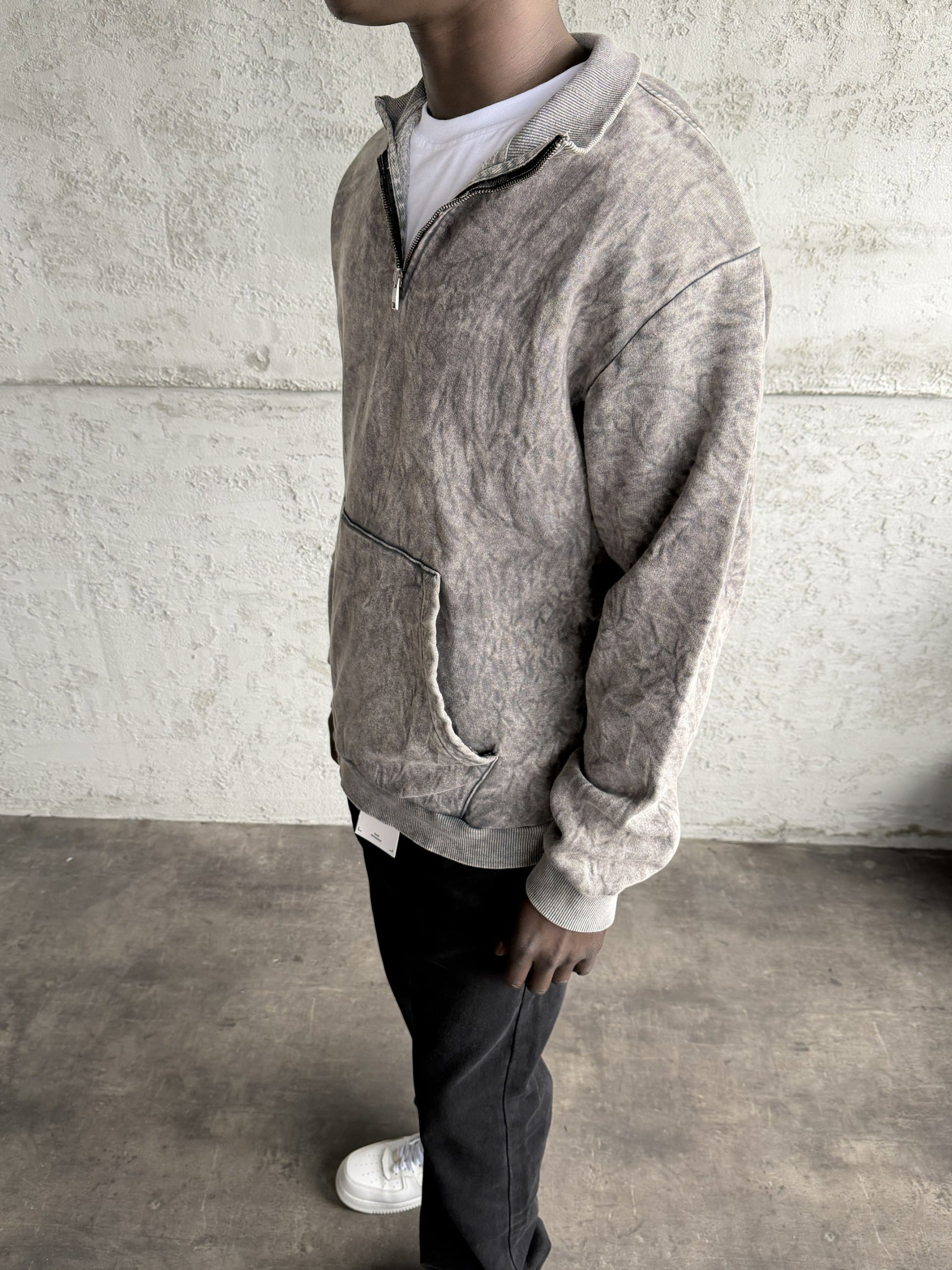 Koyu Gri Yıkamalı Fermuarlı Sweatshirt