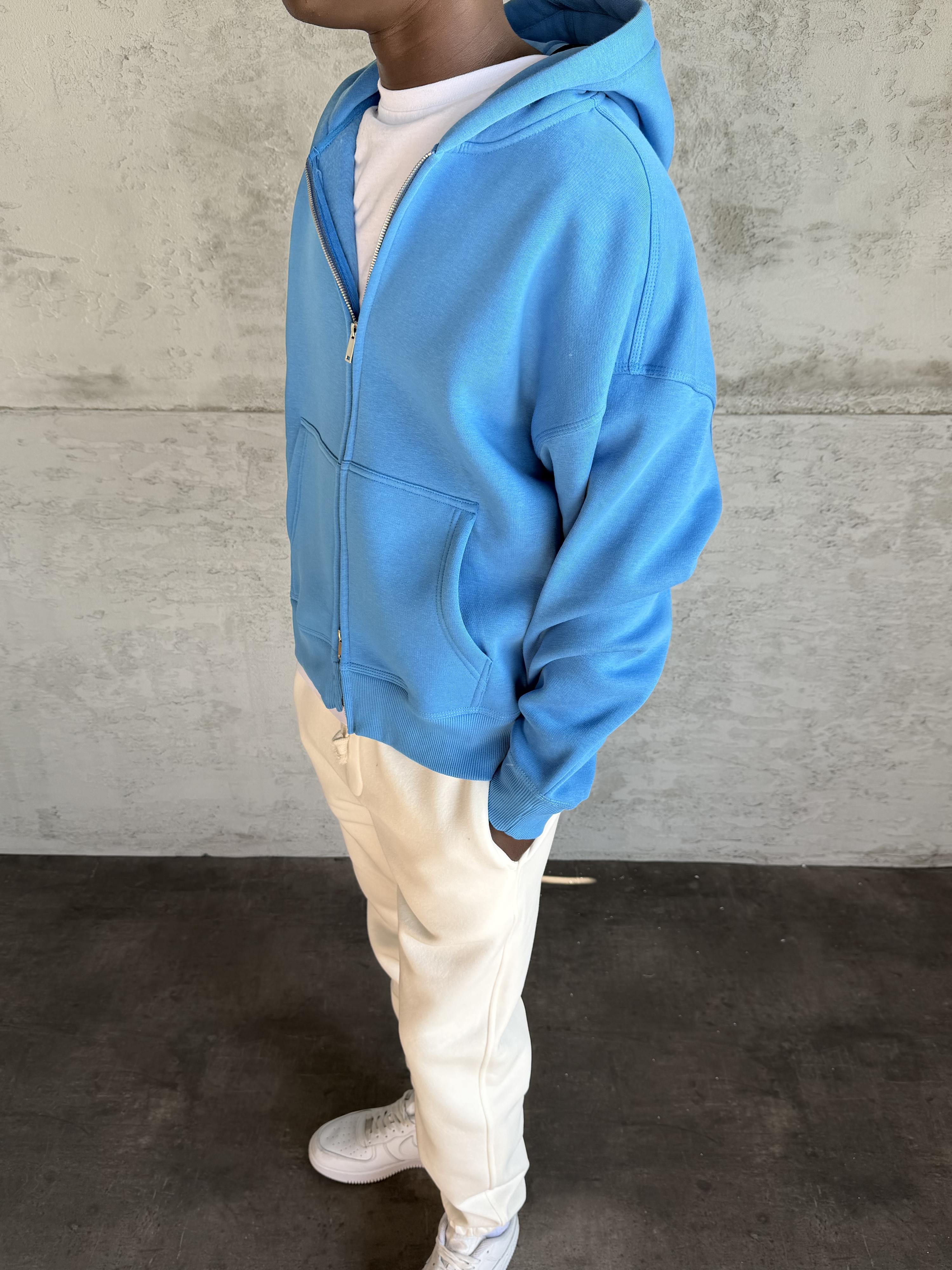 Mavi Kapüşonlu Fermuarlı Sweatshirt